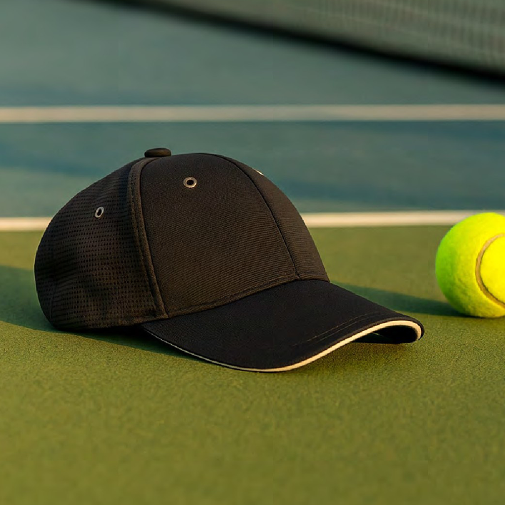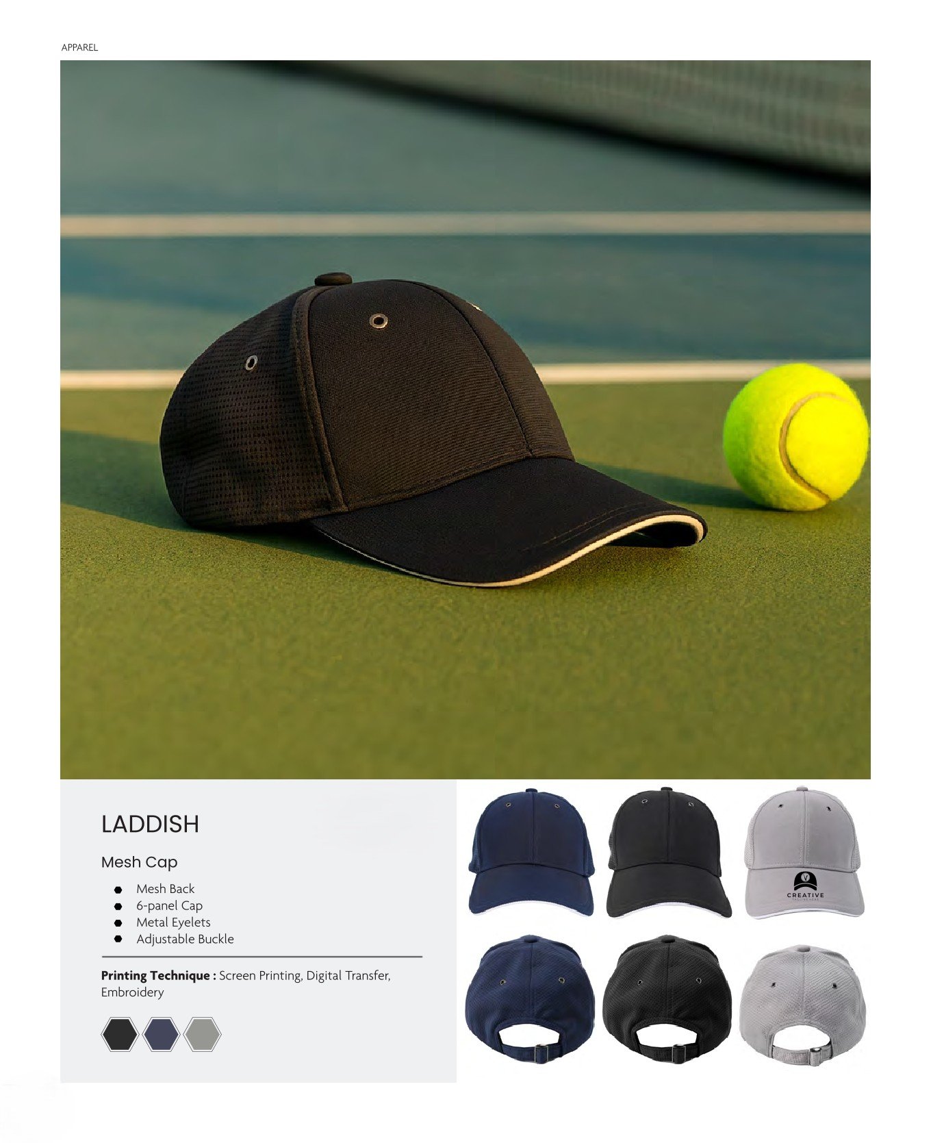 Breathable 6-panel mesh cap with adjustable buckle and metal eyelets, ideal for everyday wear and custom branding.