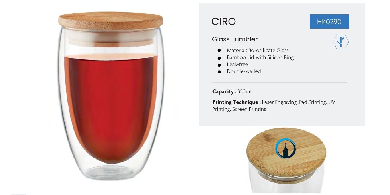 - Design: Glass Tumbler with Bamboo Lid