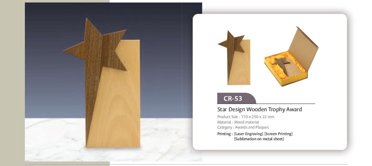 Premium star-shaped wooden trophy award, perfect for corporate recognition, school achievements, and commemorative events.