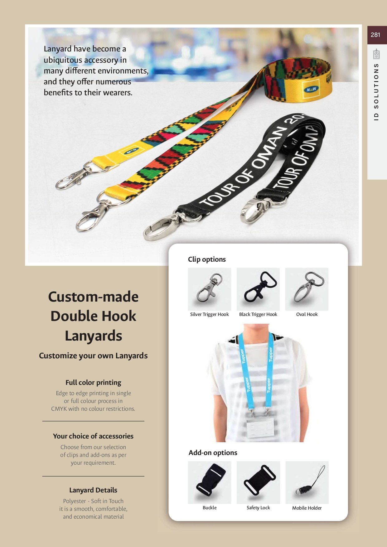 Fully customizable polyester lanyards with multiple clip options, full-color printing, and add-on accessories.