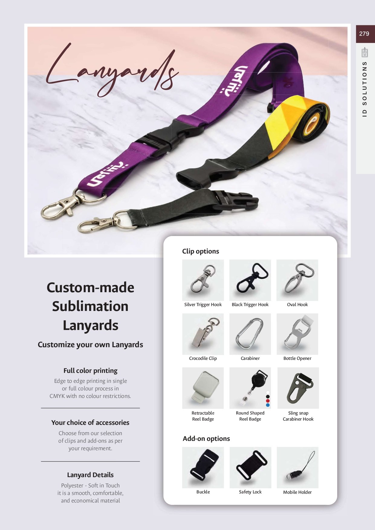 High-quality polyester lanyards with full-color sublimation printing and customizable clips and accessories.