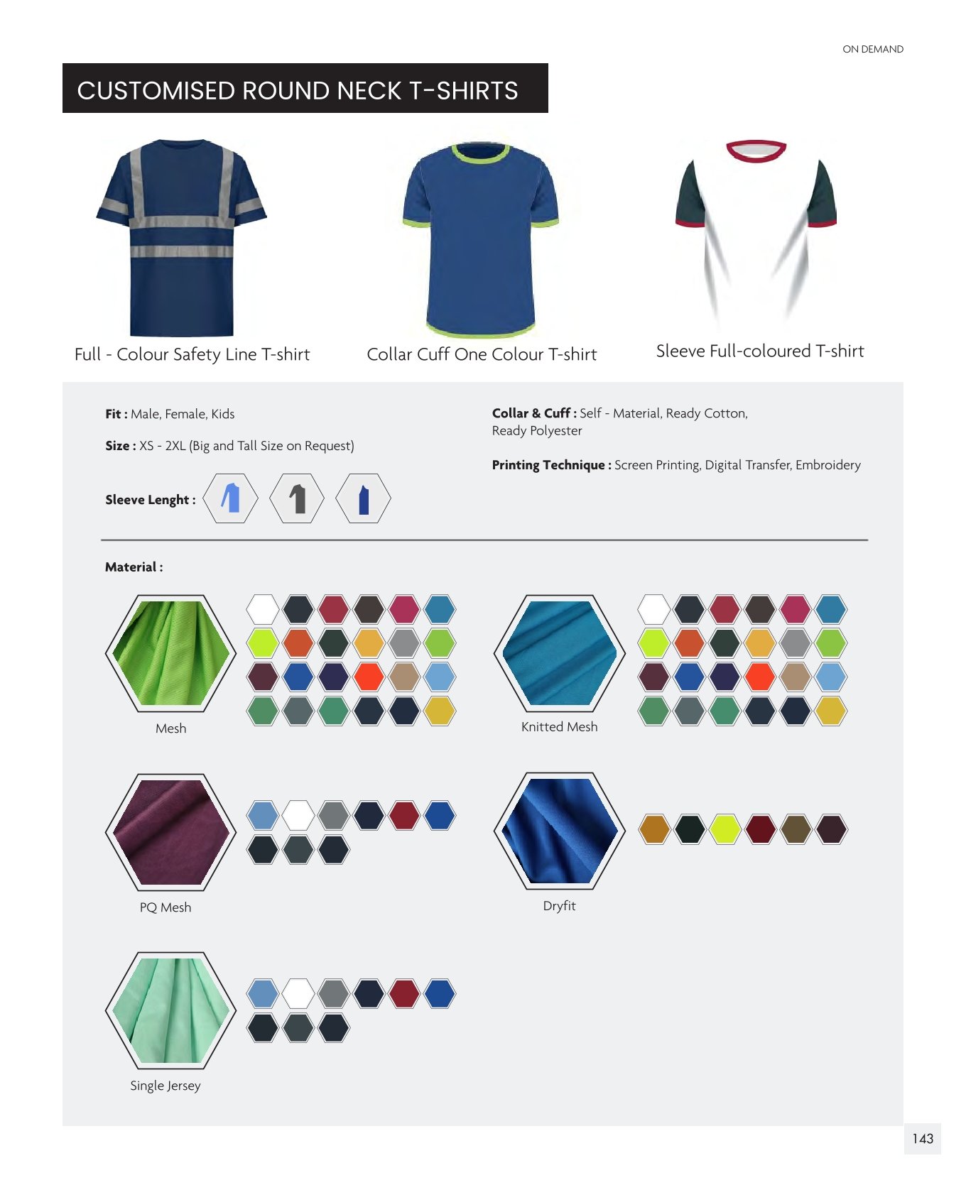 - Material Options: Mesh, Knitted Mesh, PQ Mesh, Dryfit, Single Jersey