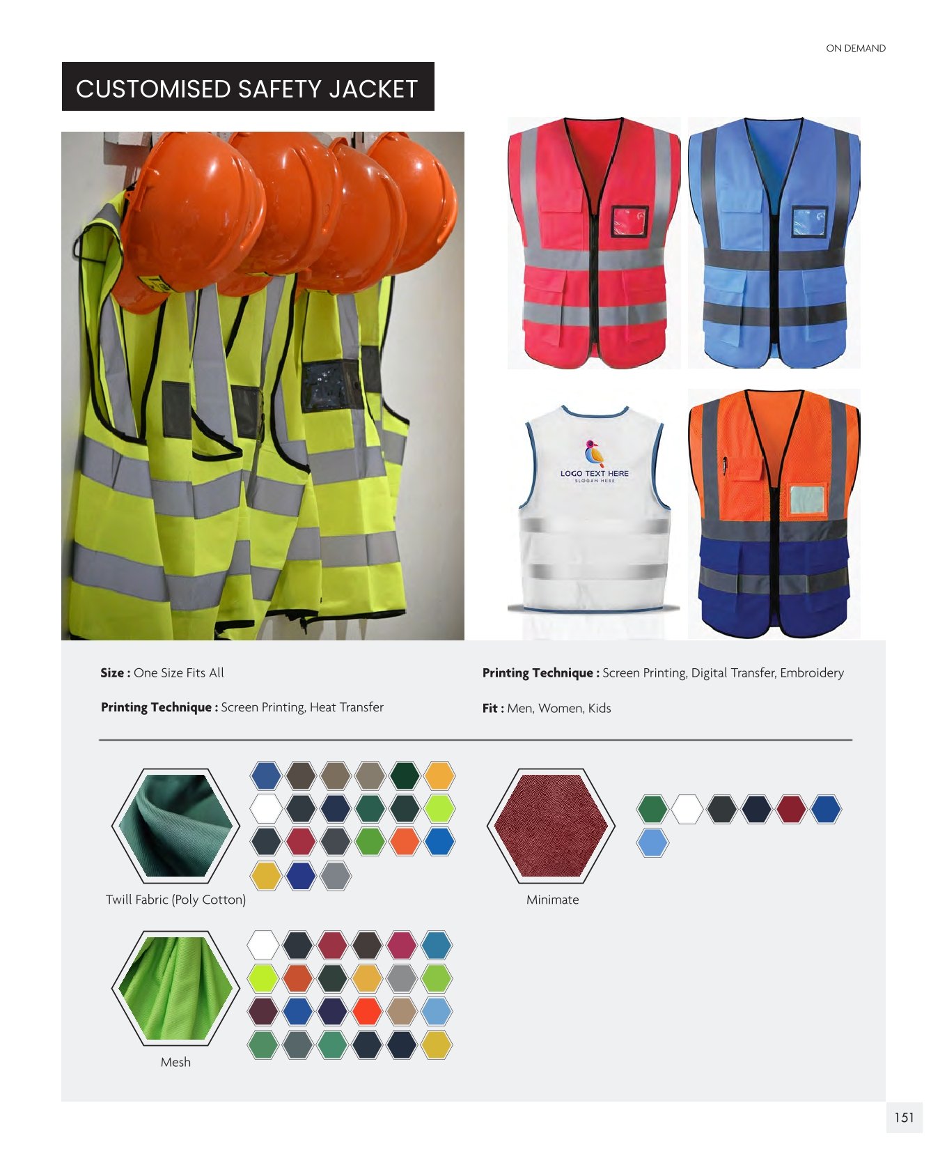 High-visibility safety jackets customizable with your logo or text, suitable for men, women, and kids.
