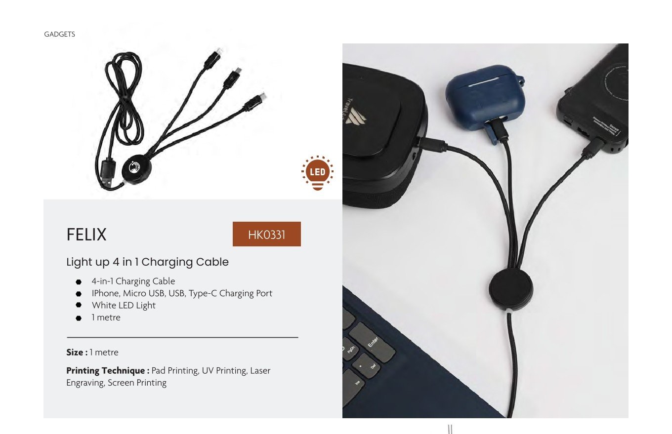 - Design: Light-up 4-in-1 Charging Cable