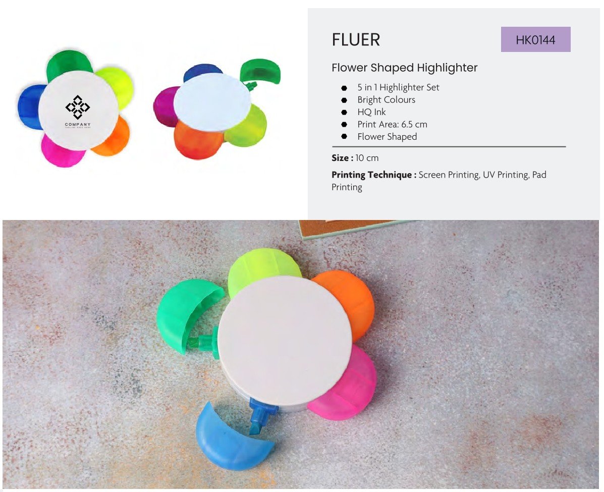 5-in-1 flower-shaped highlighter set with bright colours and compact design.