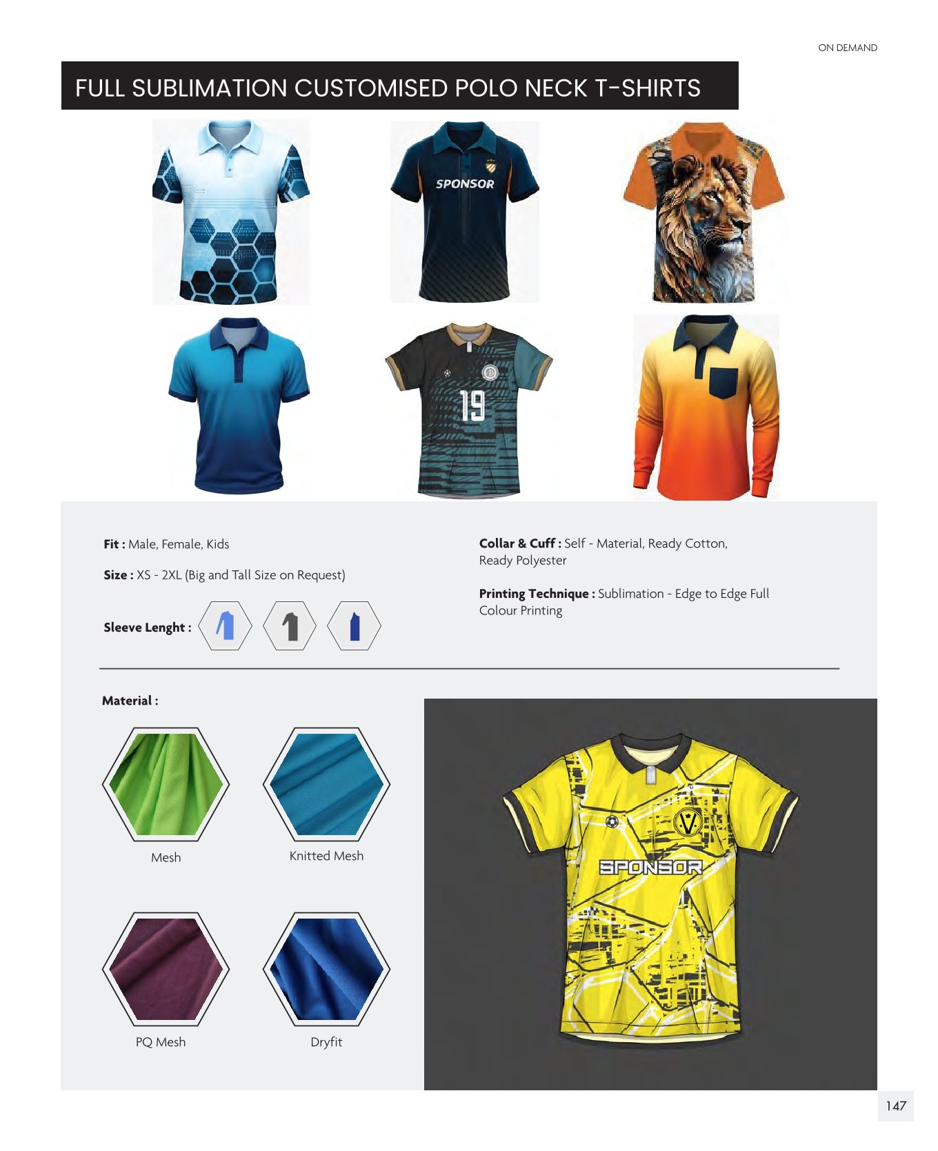 Material Options: Mesh, Knitted Mesh, PQ Mesh, Dryfit