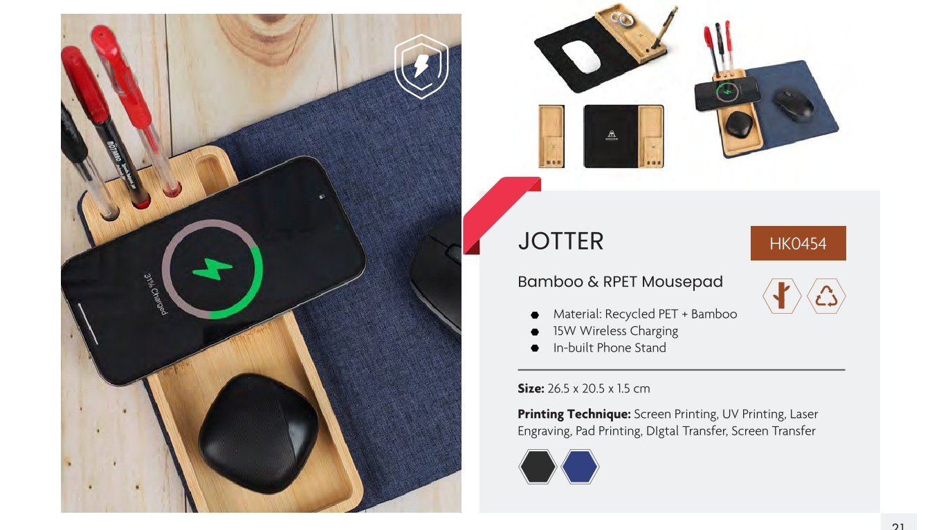 - Design: Bamboo & RPET Mousepad with Wireless Charging