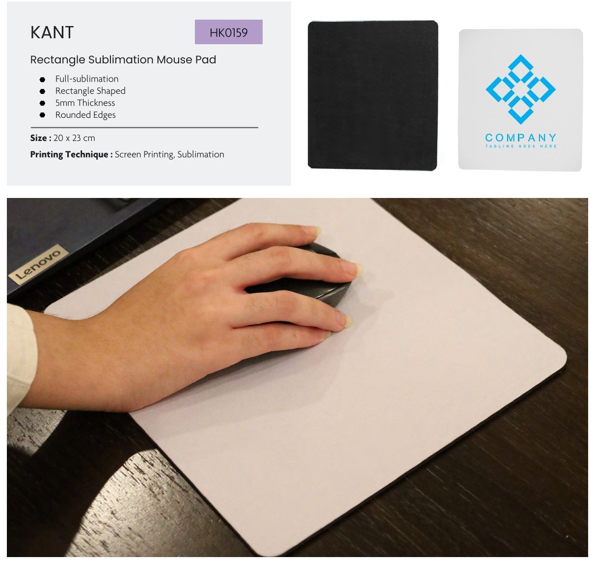 Full-sublimation rectangle mouse pad with rounded edges, ideal for branding and desk use.