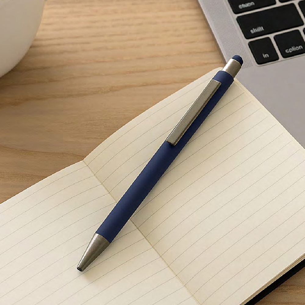 Matte-finish metal pen with built-in stylus—ideal for professional writing and touchscreen use, with customizable branding options.