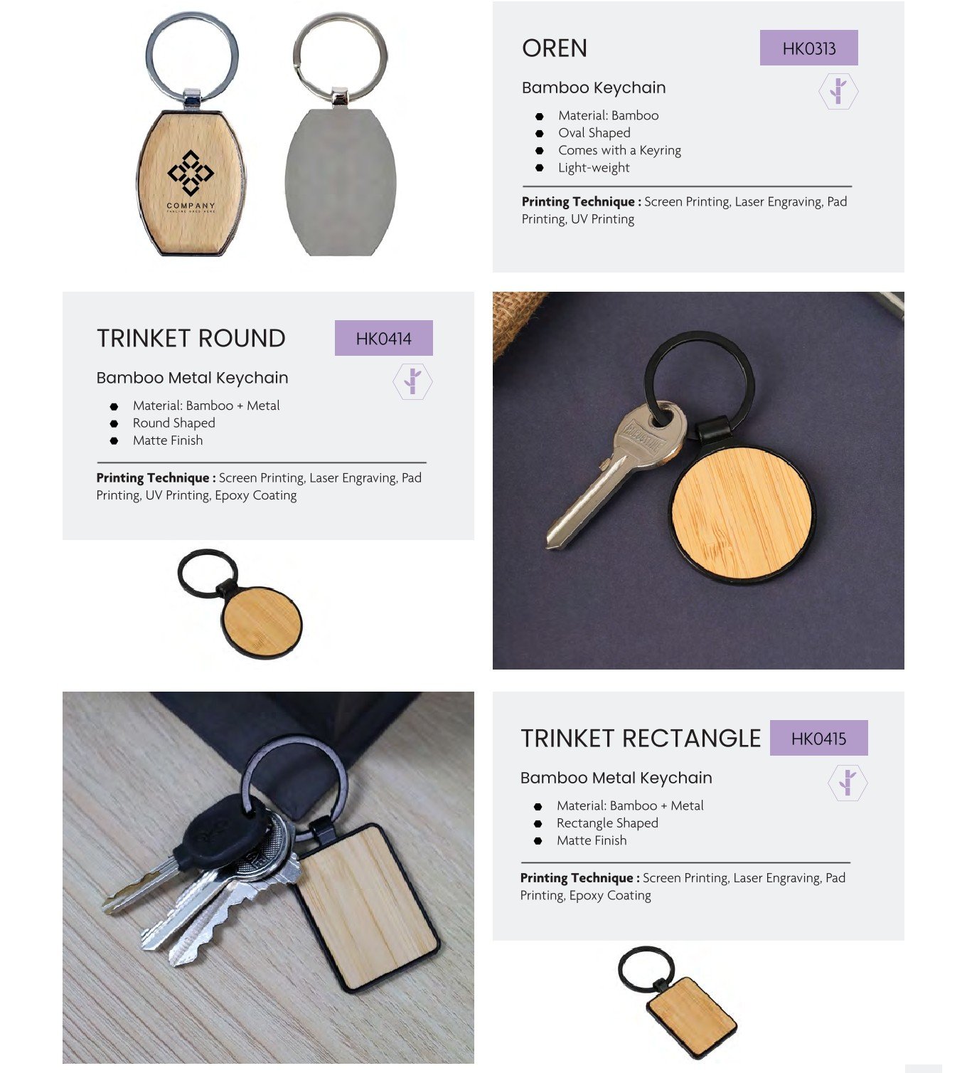 - Printing Technique: Screen Printing, Laser Engraving, Pad Printing, UV Printing